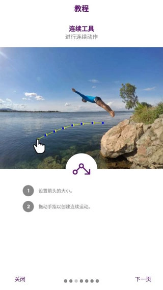 2. 设定连续动作,通过拖动手指来实现连续运动。