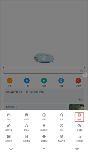 1. 在首页右下角点击“设置图标”,然后选择“插件”。