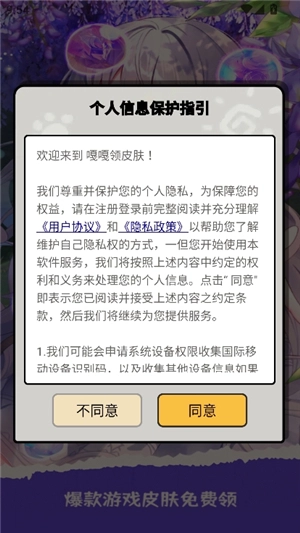 嘎嘎领皮肤该如何使用呢? 1、在本页面找到嘎嘎领皮肤软件,完成安装后打开软件,并同意隐私政策。