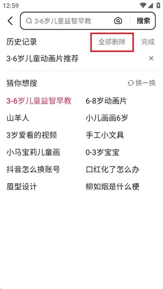 2、在搜索框下方,有一个删除按钮,点击该按钮即可。