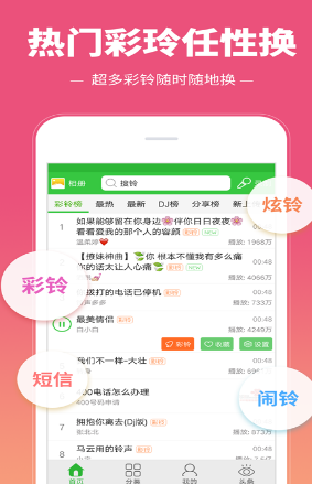 4.火热铃声实时更新,网罗分享量超高的铃声,汇总个性又流行的彩铃。
