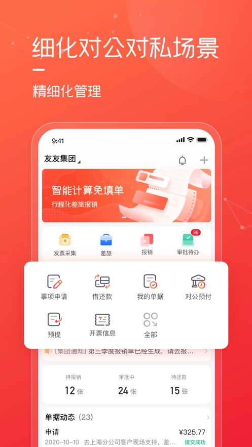 1、推出费用报销、出差、企业支付等前沿管理解决方案,助力企业实现精细化费用管理。