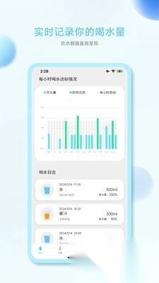 2、智能推送,时刻关注您的饮水方式:实现自主连接,饮水数据自动推送,云端后台随时同步,让您随时关注自己的饮水方式。