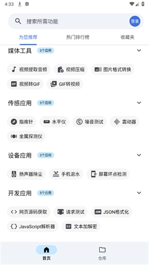 2. 进入首页,便能瞧见各类热门工具应用。