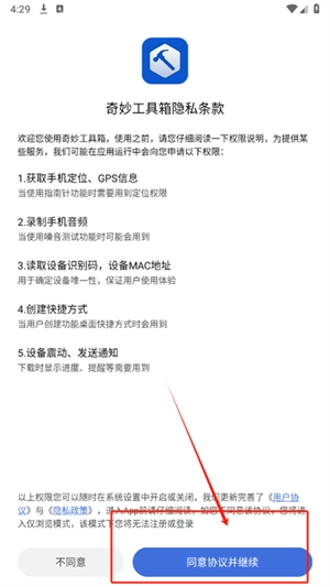 1. 于本站安装奇妙工具箱,在同意用户协议与隐私政策后即可进入。