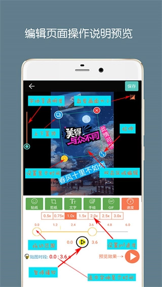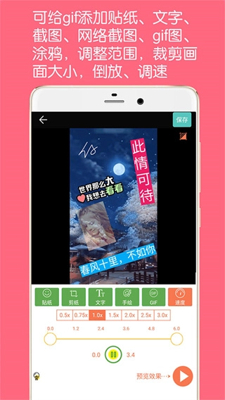 5、能够往待制作的GIF里添加任意数量的文字、贴纸、自定义图片以及GIF图片。