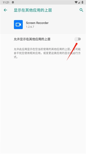 2、接着将允许显示在其他应用的上层功能开启。