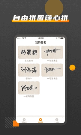 签名DIY手机版,深受用户信赖。它提供多张连接拼长图功能,让你能轻松绘制专属个性签名。一键设计,多种选择任你挑,为你量身定制独一无二的个性签名,还能依据个人喜好自由设计。这款软件简单易上手,感兴趣的朋友,快来本站下载体验吧!