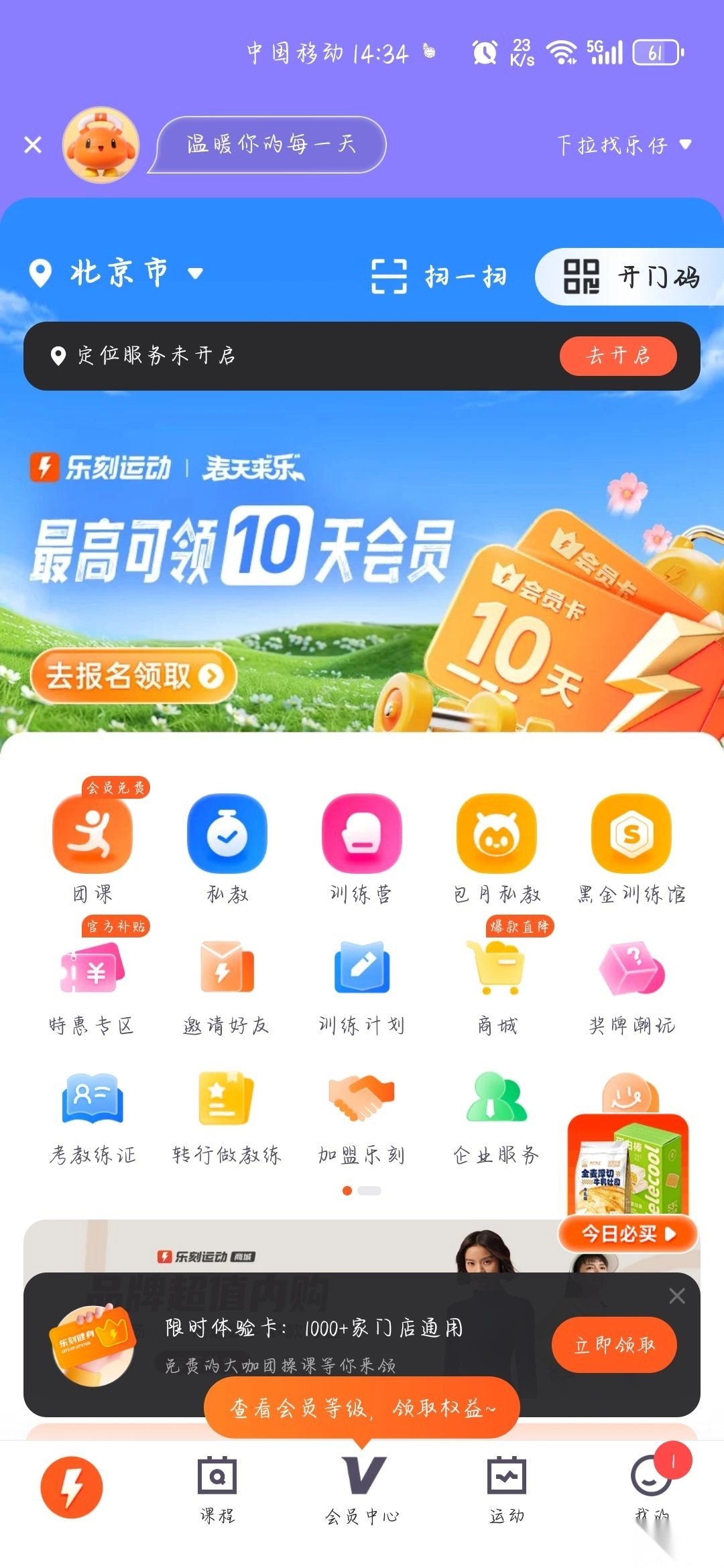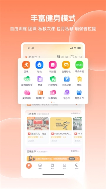 1. 将首页定位调整至城市范围,如此便能快速查看距离自己最近的门店、可预约的团课以及推荐的教练。