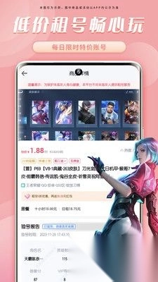 汇聚海量大神的精品账号,用户能够获取精品账号资源用于租赁,尽情体验精品账号内的游戏皮肤。