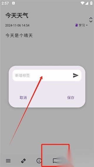 3、进入知识编辑页面,在此处用户能够输入想要保存的内容,在页面下方点击即可设置相关标签。