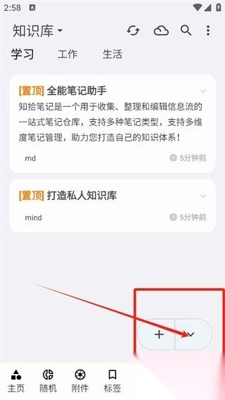 1、开启软件,轻点右下角的添加知识按键。