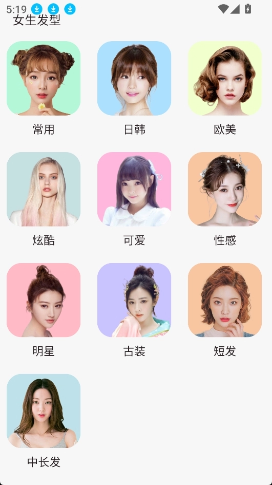 1. 发型类型涵盖日韩、欧美、古装等多种风格,充分满足不同审美需求。用户可快速切换预设发型,直观查看不同发型呈现出的效果。