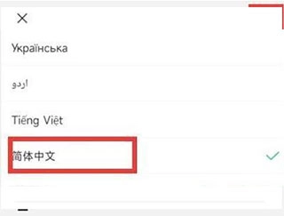 3、随后继续向下滑动,寻找到简体中文选项,点击其右上角的字符。