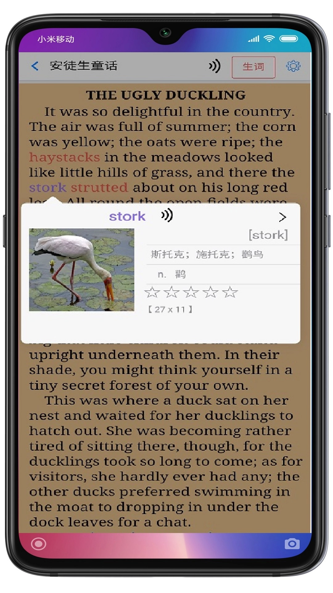 二、专属个人的英文内容里,生词的颜色标记以及释义链接;