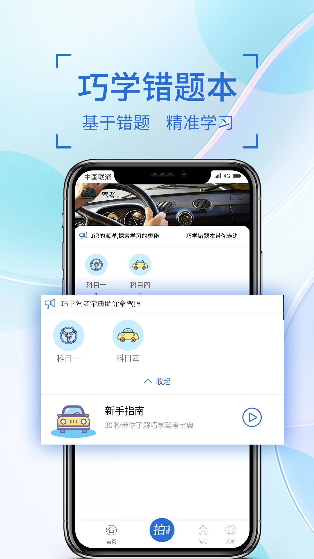在各类考试,像驾考之类的学习过程中,把错题整理到错题本上,后续重点复习错题本里的题目,是实现高效学习的重要途径。然而,错题整理让不少人感到头疼,以往整理错题需要耗费大量时间。为了帮大家摆脱抄写、复印错题本的繁重任务,我们研发了“巧学错题本”这一辅助工具,旨在减轻学习者负担,提升学习效率。巧学错题本没有繁杂花哨的功能,我们致力于将错题整理功能打造得实用便捷。