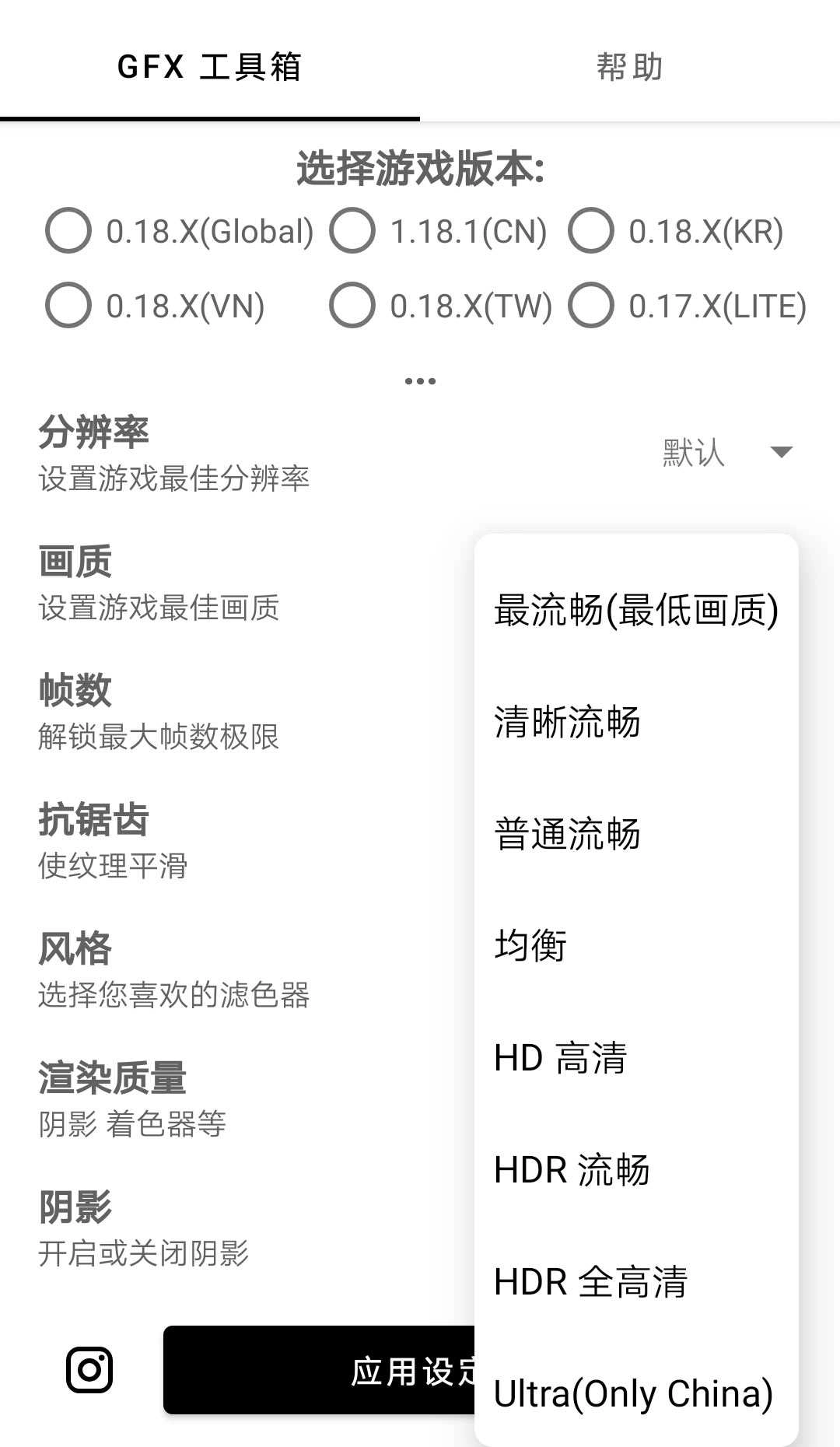 请选择适合您的游戏版本,并依据自身需求与设备性能对图形进行自定义设置。