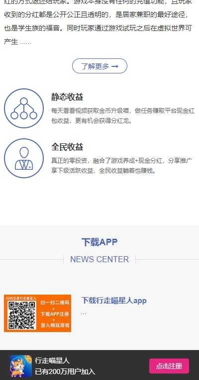 行走喵星人是一款主打经济繁荣共享理念的赚钱游戏。玩家在游玩过程中会为开发者创造经济收益,而这些收益会以分红的形式回馈给用户。该游戏没有任何充值功能,用户所获分红公开、公正且透明,堪称居家兼职的绝佳选择,也是学生群体的福音。此外,玩家在试玩游戏后,还能在虚拟世界中有独特产出。