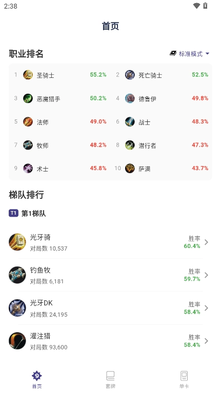 2、渴望学习强力卡组吗?“套牌”板块为你呈上丰富且详尽的职业套牌信息,助你迅速掌握各类流派。