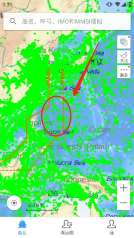 1首先,在手机上开启船讯网。接着,在地图中找到你感兴趣的船舶所处位置,并将地图放大。