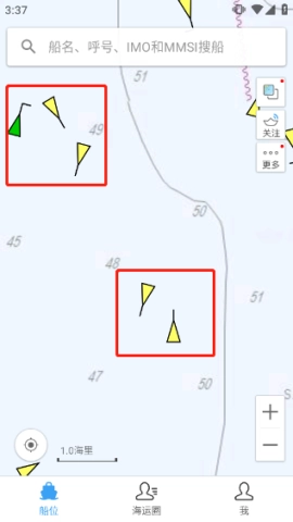 3. 放大地图,直至能看见该位置的船只,一旦发现,点击那个黄色三角形图标。
