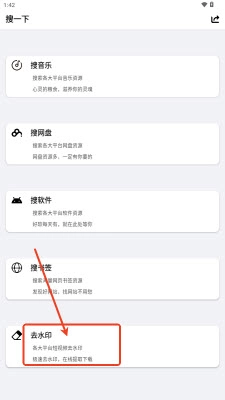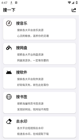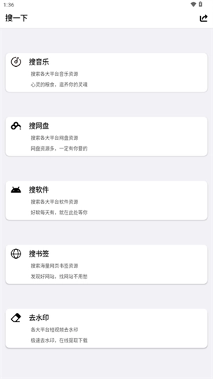 2. 进入后,能够对音乐、网盘以及软件等资源类型进行搜索。