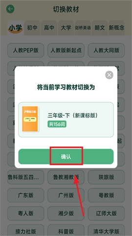 3、在确认教材信息无误后,点击“立即切换”按钮。当系统提示切换成功,就能够使用新教材内容了。
