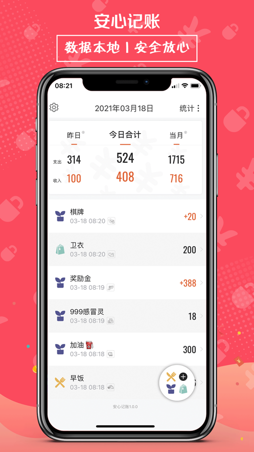 安心记账,专门用来进行手机记账的软件,我们日常生活中会产生很多的消费的,如果不能及时的将这些消费记录好的话,就会不知道自己的钱到底是花到哪里去了,但是有了这款软件就能很好的解决了记账的问题了,让你可以知晓自己的每一笔钱用到哪里去了。