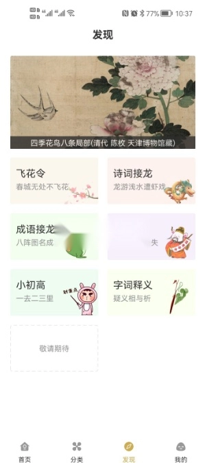 4、在软件中用户可以找到许多的资源内容,每日都可以看到自己喜欢的古诗词。