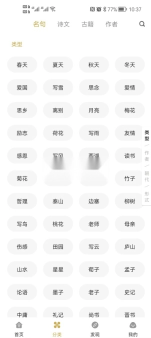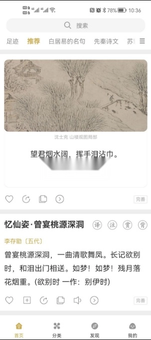 1、非常好用的一个移动端诗词学习软件,平台里面的各种诗词种类丰富,大家也能在线搜索。