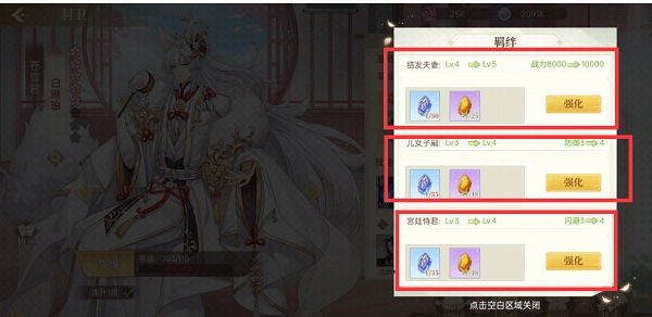 激活羽卫并提升其羁绊,能够增强羽卫的战力以及防御和闪避这两项四维属性。