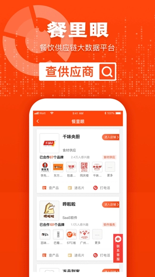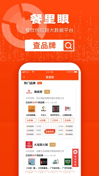 3、餐饮大数据提供多维度一站式查询服务,可查询餐饮门店、品牌、供应商等各类信息,在手机上就能便捷操作。