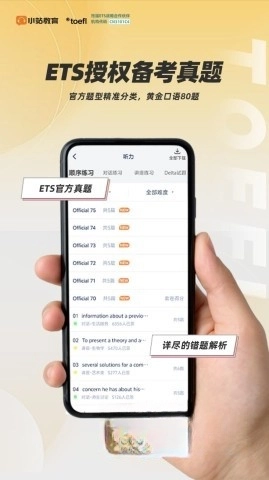3、进入“听力”模块,你能够练习ETS真题。这里题目分类清晰明了,不仅有详细解析,还支持重复练习,定能助你提升效率,达到事半功倍的效果。