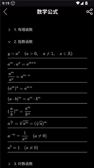 2. 在其中,你能够自由查看各类函数公式,包括有理函数、指数函数。