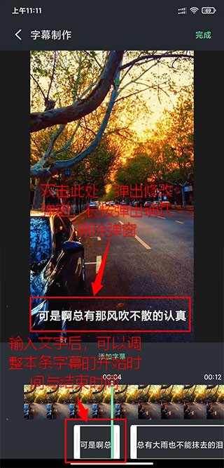 通过左右滑动选区,能够针对每一段话设定开始时间与结束时间。若要修改已输入的文字,双击即可。