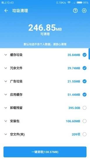 1、只需一键,即可清理多余文件,快速清除手机中的无用文件与垃圾,瞬间释放大量手机内存。
