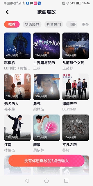 4、歌曲爆改功能,能让你对所使用的热门歌曲进行AI爆改。