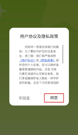 1. 启动应用时,会呈现用户协议页面,点击“同意”按钮,便能进入皮肤领取平台。