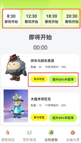 4、限时夺宝活动按不同时段开放,参与抽奖便有机会赢得珍稀皮肤与游戏道具。