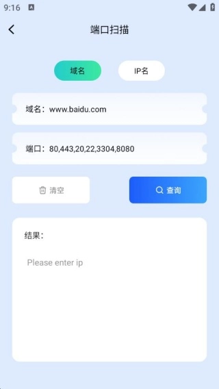 3、点击端口扫描,既能进行域名查询,又能进行IP名查询,操作方便简单,易于上手。