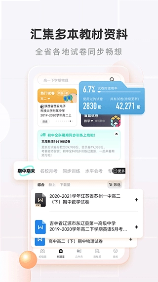 多省份、九大学科、小初高全学段,汇聚万份精心挑选的试卷。不仅支持一键导出打印,试卷高清且解析清晰,还支持线上刷题。每日一份,助你在考试冲刺阶段轻松拿下高分。