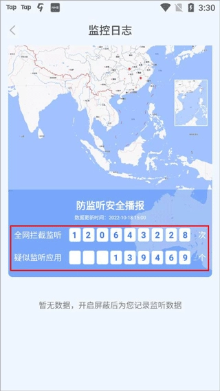 3、开启监控日志,便能查看拦截监听的次数以及疑似存在监听行为的应用。