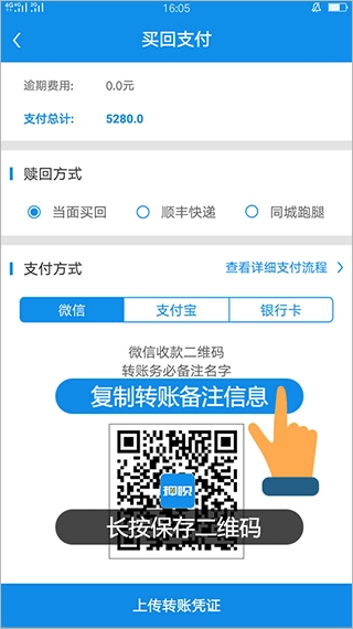 2、依照买回页面所展示的转账方式,完成相应金额的转账操作。转账过程中,请一定要填写备注信息,备注信息必须涵盖:用户姓名、用户电话以及订单号。