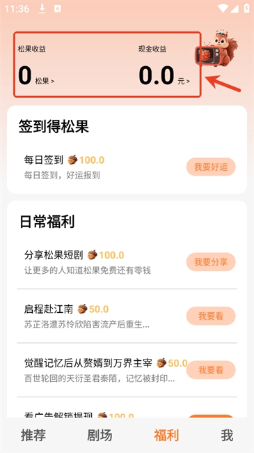 3. 成功登录之后,点击【福利】选项,按照所提要求完成对应的任务就行。
