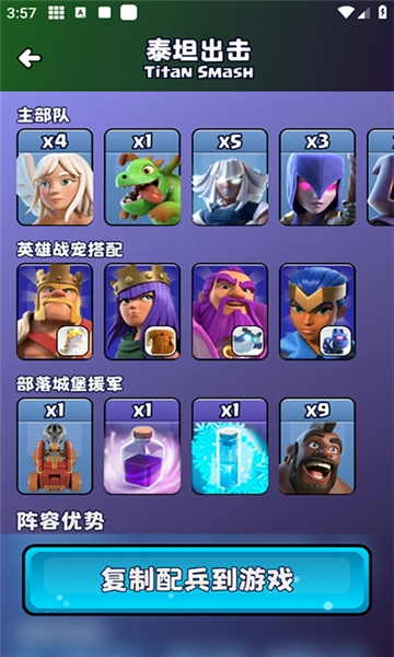 5、你能够尝试挑选不同的部队与英雄,自由搭配组合,而且还能够复刻其他用户的阵型。