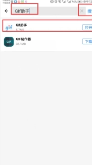 2、在搜索栏内输入“GIF助手”,点击“搜索”按钮,对出现的软件进行安装。