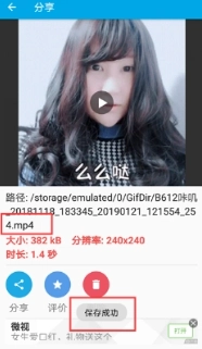 7、于“分享”界面获取GIF相关信息,能够选择分享、评价、删除等选项。