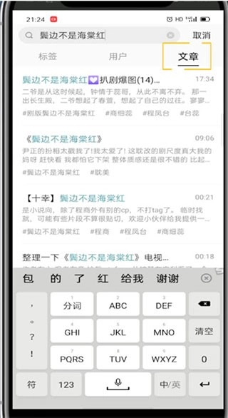 3、在搜索框输入文章名字,点击文章即可进入查看