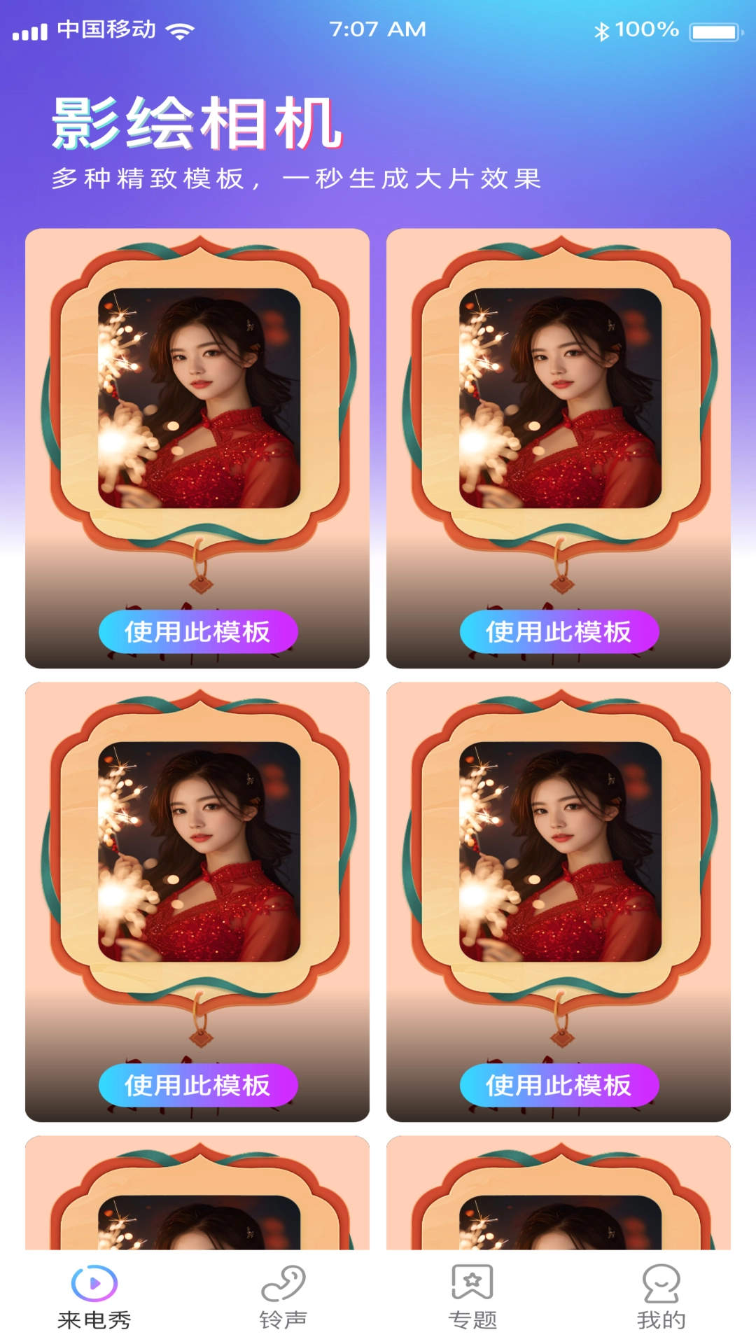 1、拍照模板:提供了多种不同类型的拍照模板,包括美食、风景、人像等,用户可以选择适合自己的模板进行拍摄。