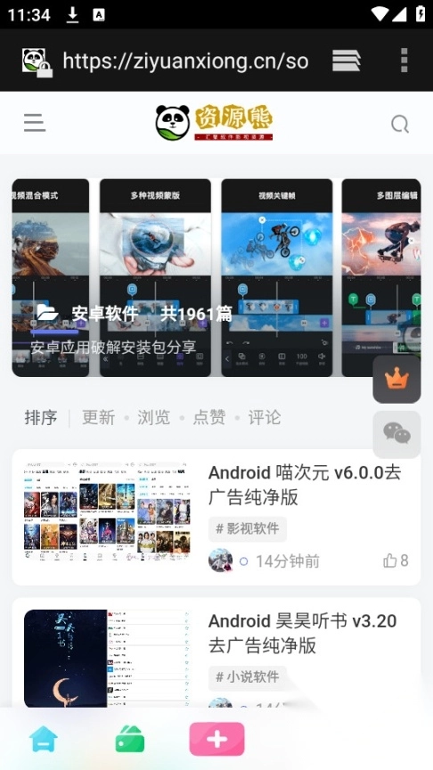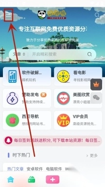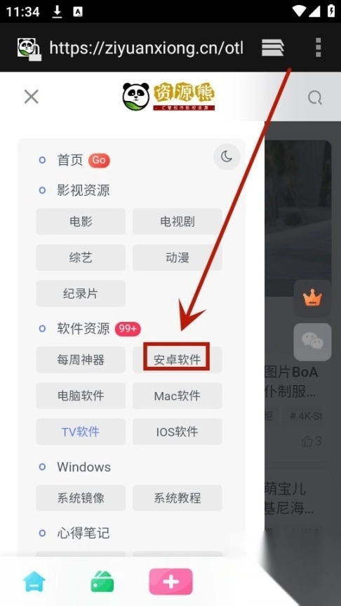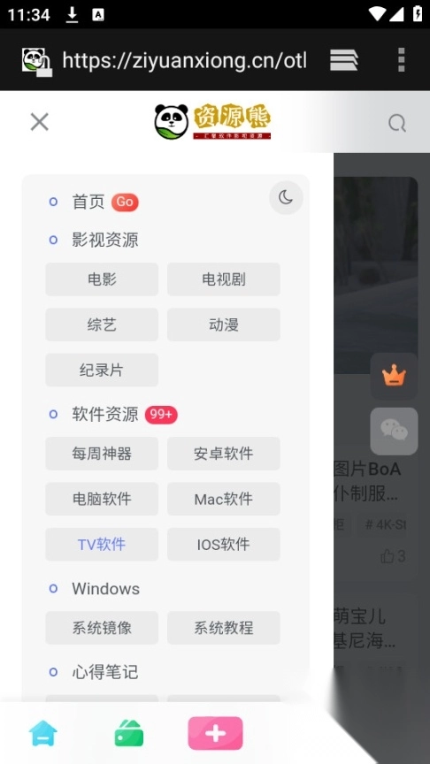 进入资源熊首页之后点击左上角三个横线